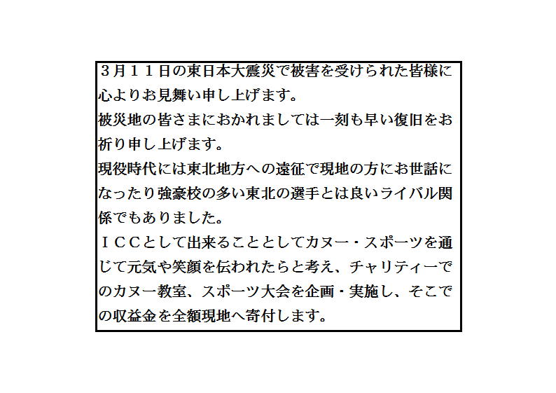 伊坂ダムの水質、コース、ポロコート、クラブハウスと恵まれた環境を活かし濱口教諭を中心としたICCメンバーの経験を活かした指導・競技力を次世代に継承し、桑名西高校カヌー同行会からインターハイ・国体で活躍できる選手を育成したいと思っております。